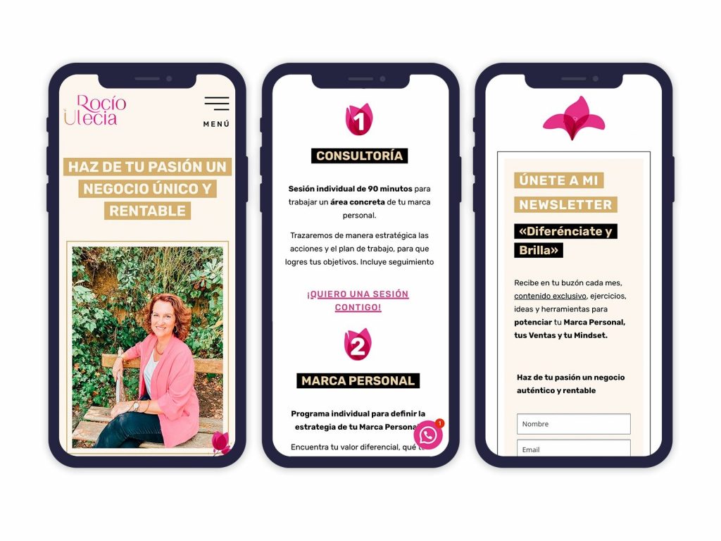 Diseñar la marca visual y el sitio web corporativo para que sea atractivo y destaque los beneficios de trabajar con esta profesional.